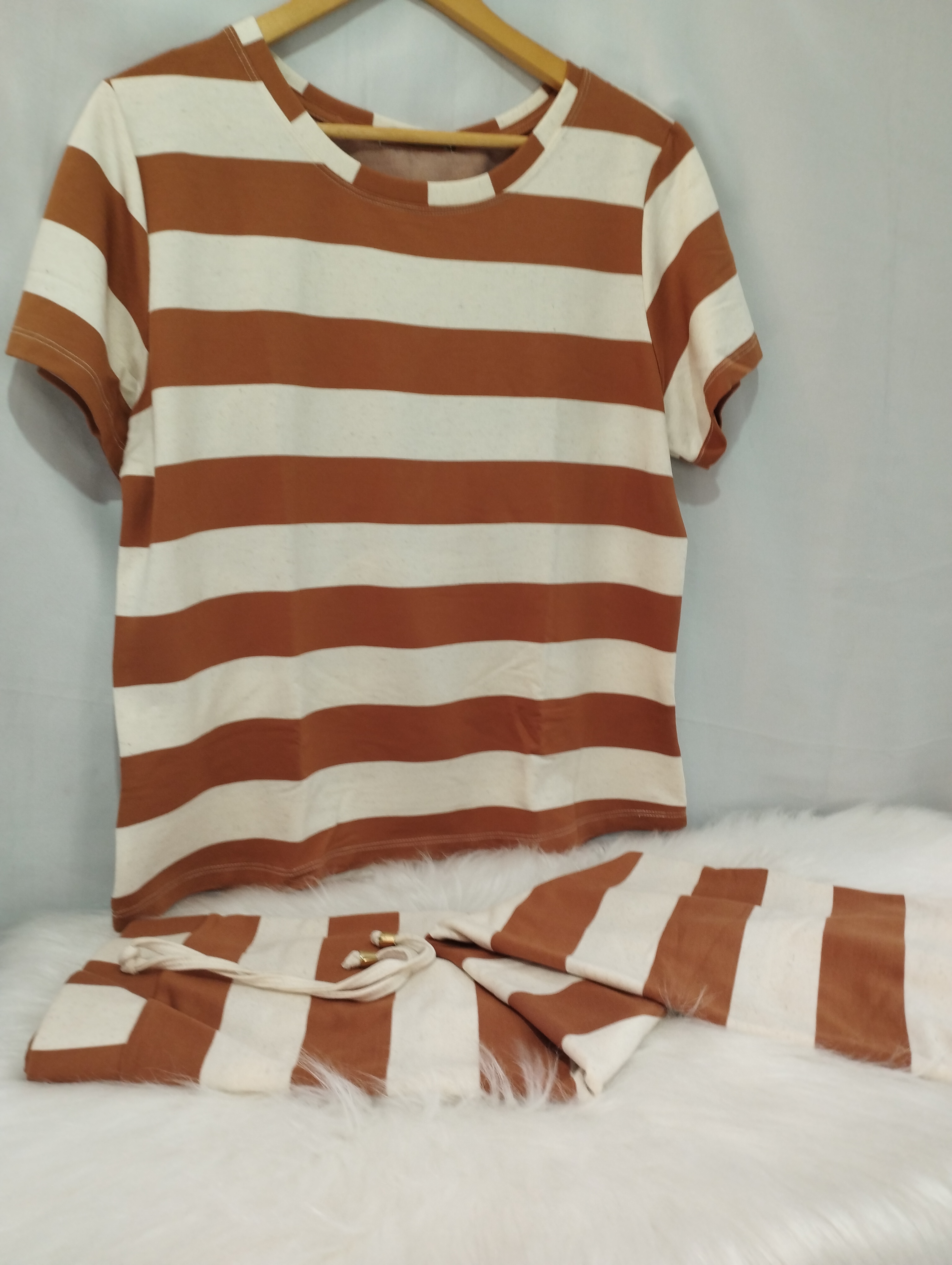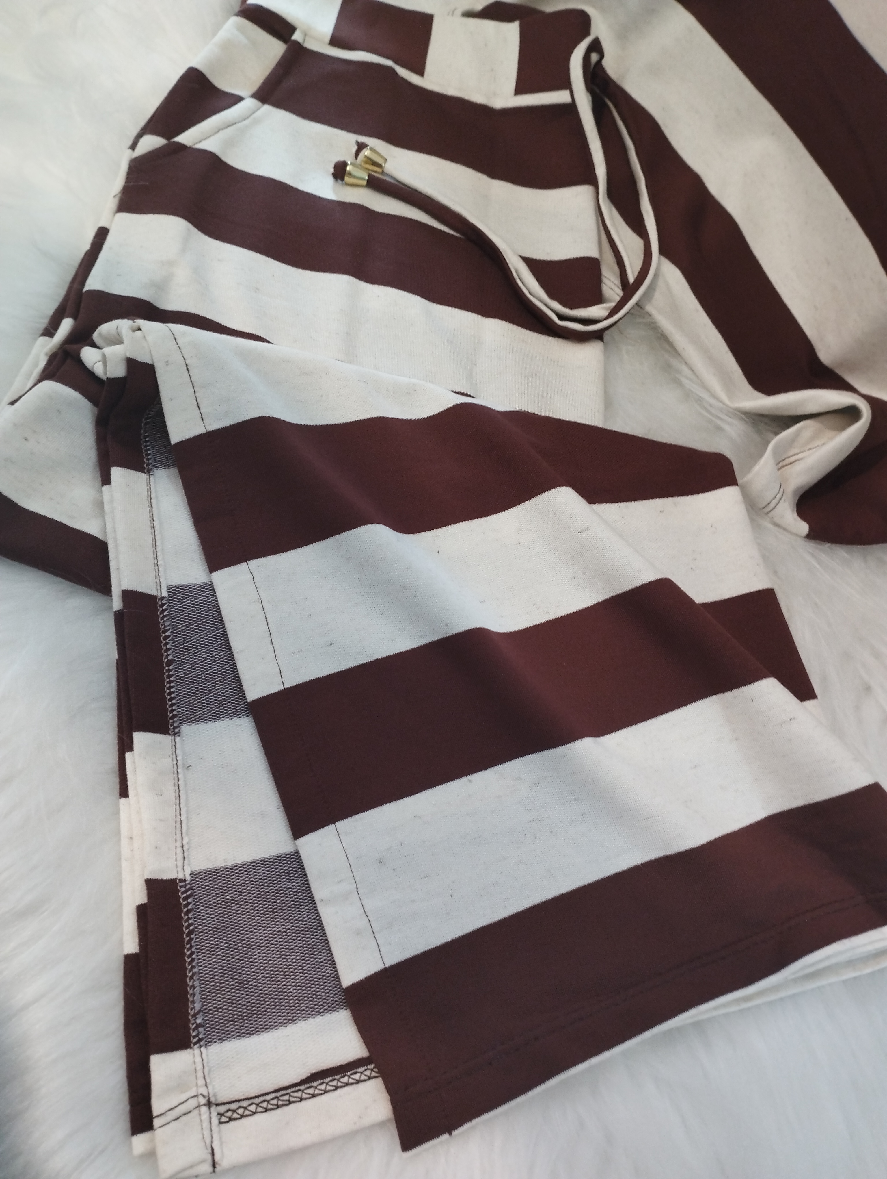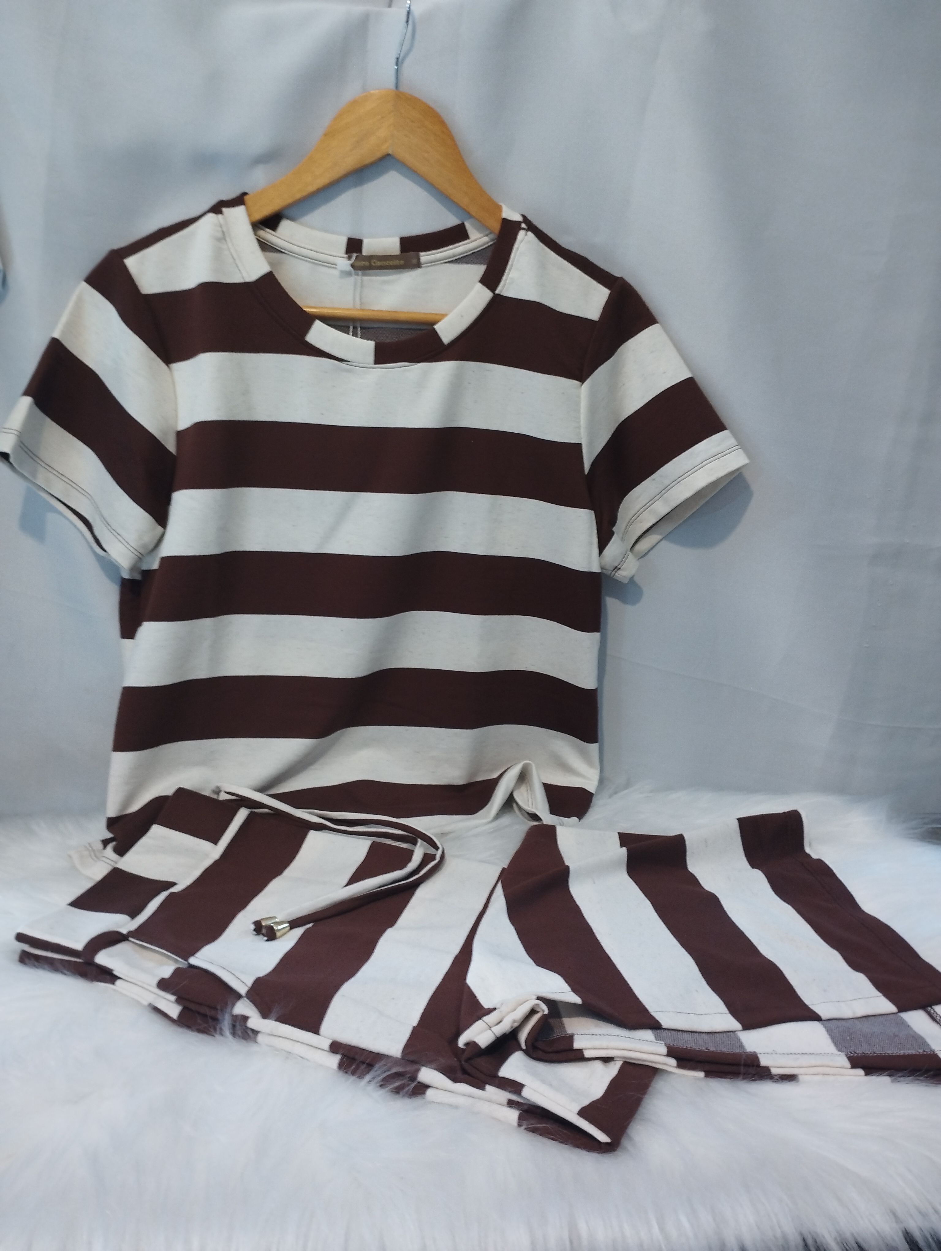 Conjunto de saia em moletinho listrado que combina conforto e estilo em uma única produção. A saia possui modelagem ajustada, listras que alongam a silhueta e fenda lateral que valoriza o visual com um toque moderno e feminino. Conta também com bolso faca funcional, trazendo praticidade para o dia a dia. Confeccionado em moletinho macio e leve, é perfeito para composições casuais ou mais arrumadas, garantindo versatilidade e conforto em qualquer ocasião